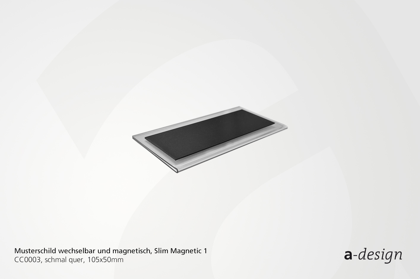 Das Schild Slim Magnetic 1 eignet sich für die flexible Beschriftung auf einer Stahloberfläche. Das Schild besteht aus einer einmal gefalteten transparenten Hülle. Kleinere Magnetschilder sind mit einem, grössere mit zwei Magnetstreifen versehen. Das beschriftete Papier, das Foto oder die Folie kann seitlich oder von oben eingeschoben werden. Die Magnetschilder Slim Magnetic 1 gibt es in mehreren Grössen, von 70 x 30 mm bis zu DIN A4.