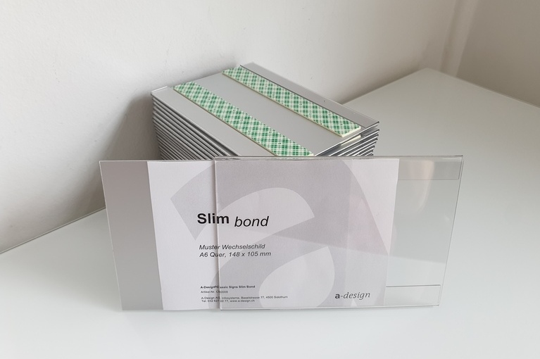 Alle Slim Bond Schilder werden mit hochwertigem Klebeband ausgeliefert, das eine leichte und sichere Anbringung ermöglicht. Dadurch lässt sich die Montage der Schilder schnell und ohne den Bedarf an weiterem Werkzeug oder speziellen Fähigkeiten durchführen.