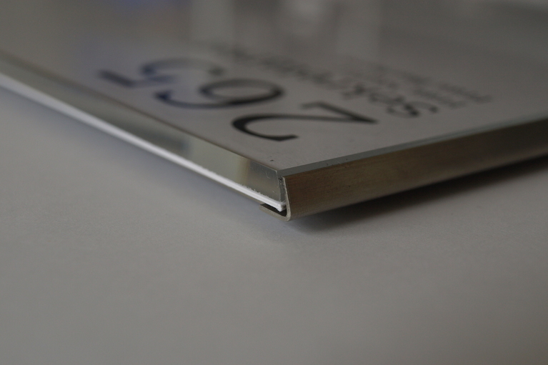 Ein hochwertiger Edelstahlrahmen mit robuster Acrylabdeckung. Ermöglicht einen blitzschnellen Wechsel der Einlagen (Papier, Foto, Folie). Vertikal und horizontal montierbar, in Grössen von 37 x 105 mm bis DIN A3. Ideal für Türschilder, Wegweiser, Fluchtpläne und Objektbeschriftungen.
